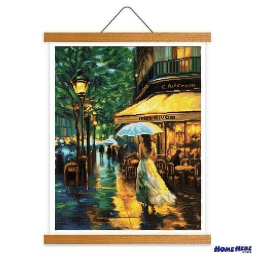 • 鑽石畫 雨夜咖啡館 掛軸無框版
